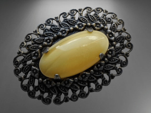 Chcemy zaprosić Was do odkrycia piękna i elegancji ażurowej broszki z cytrynianem, która jest prawdziwym klejnotem z przeszłości.