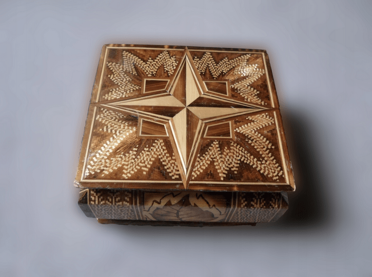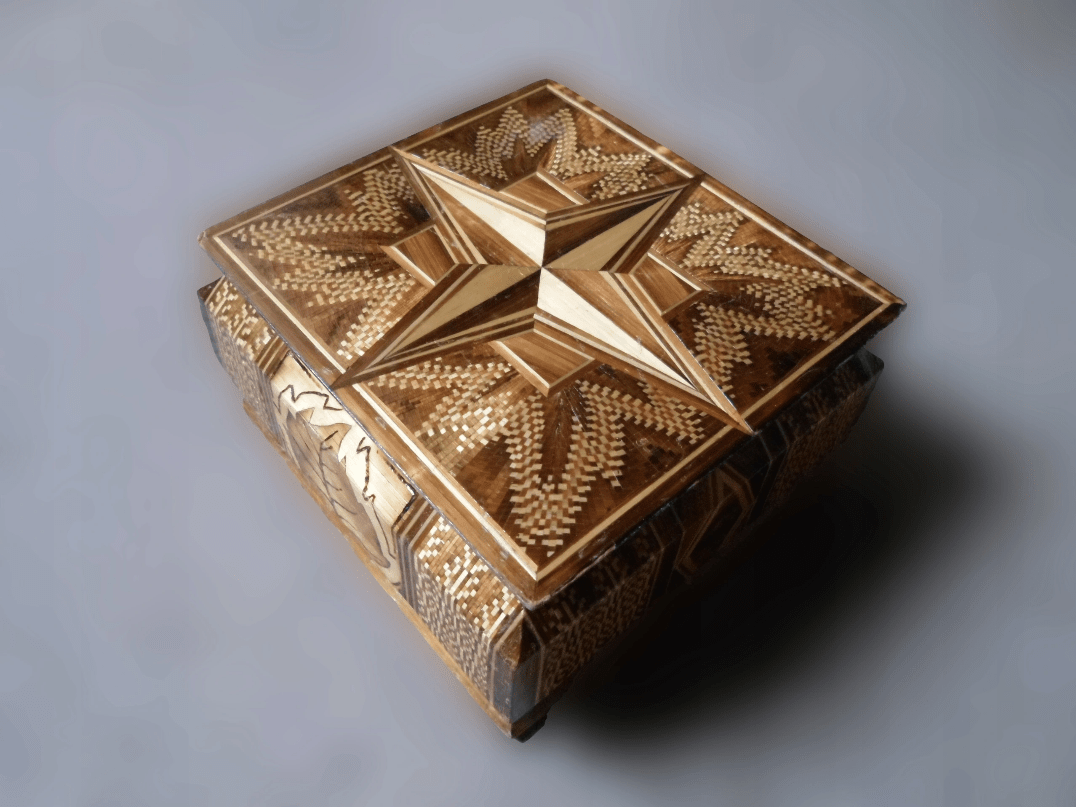 Intarsjowana szkatułka z drewna zalicza się do niezwykłego dzieła, które zachwyca swoją precyzją i pięknem.