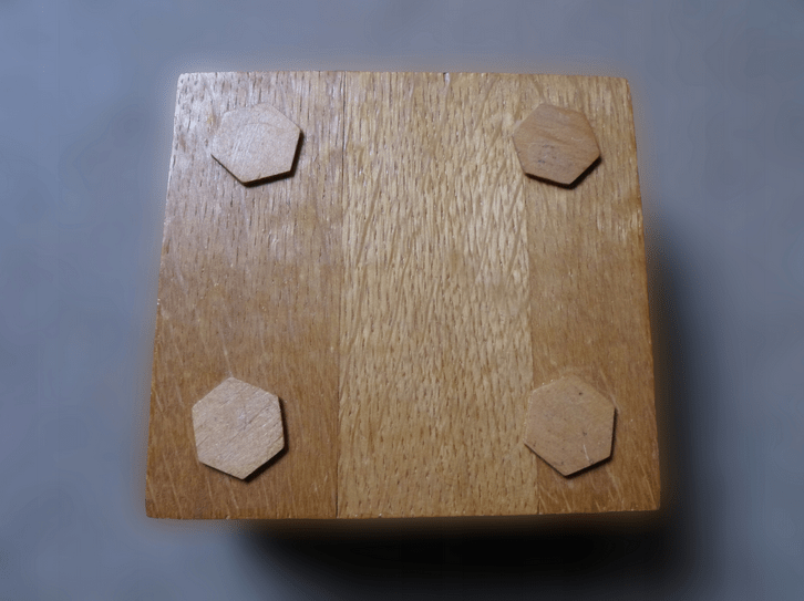 Na szkatułce znajdują się motywy geometryczne, które stanowią harmonijną całość.