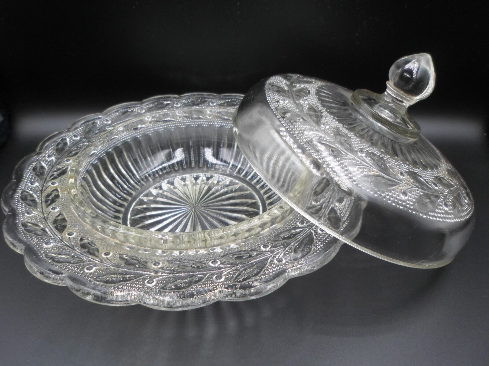 Używana, zachowana w niezłym stanie – przykrywka od strony wew. posiada niewielkie ubytki szkła – ostatnie foto,