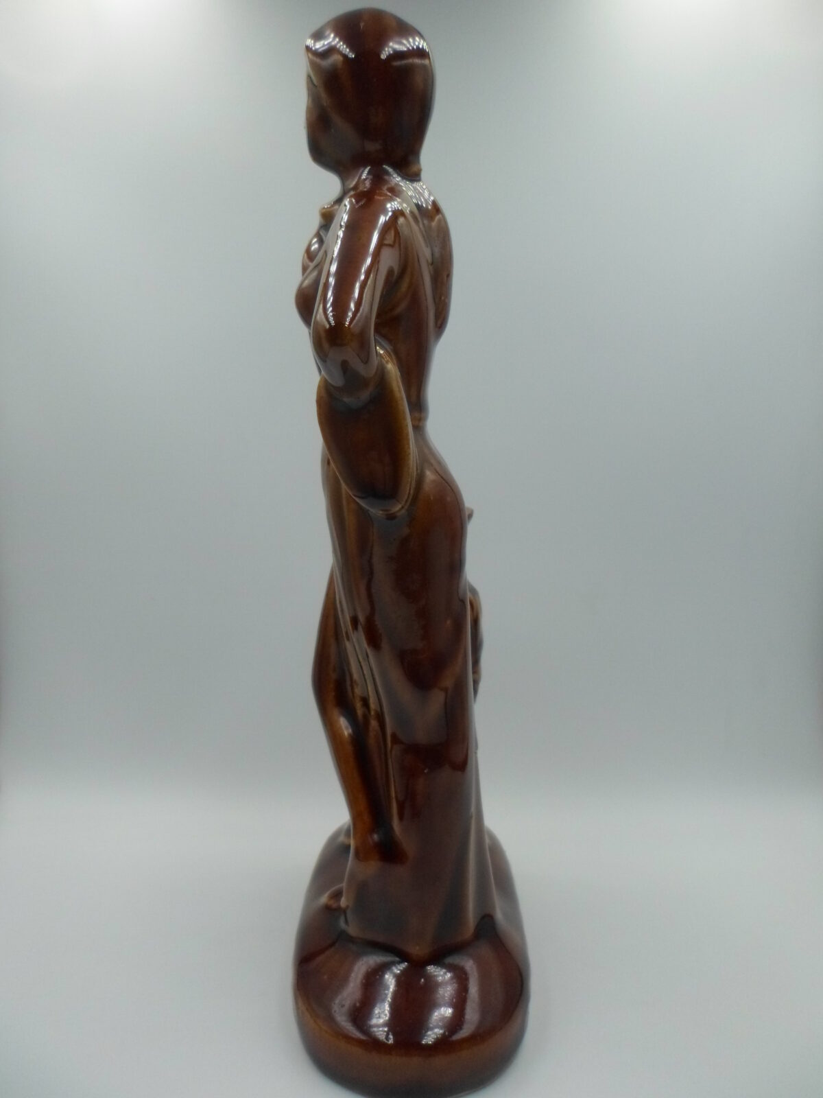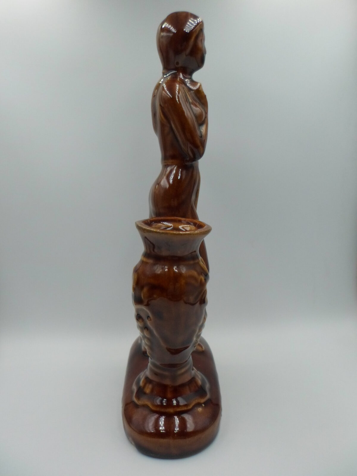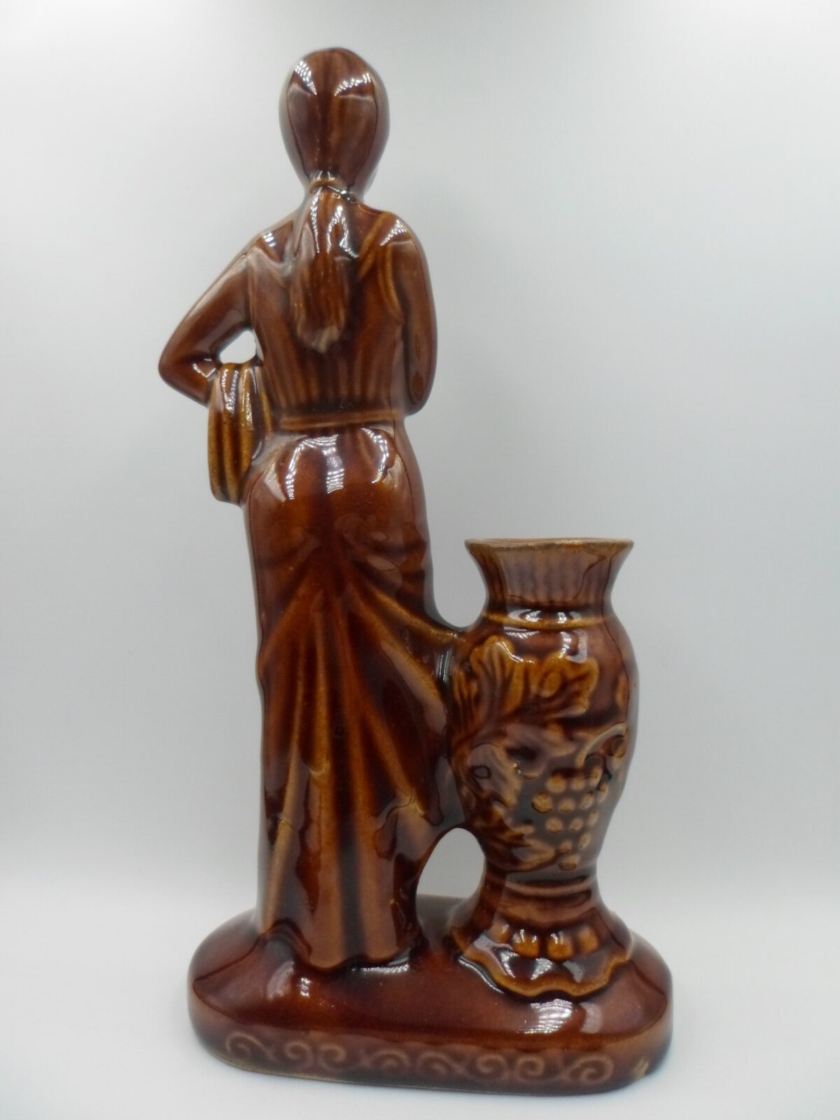 Figurka „Kobieta z wazonem” przedstawia subtelną sylwetkę kobiety stojącej przy ozdobnym wazonie. Dopracowana w najdrobniejszych szczegółach, urzeka swoim delikatnym, ale jednocześnie wyrazistym kształtem. Użycie porcelitu szkliwionego nadaje jej połysk i elegancję, tworząc efekt wyrafinowanego dzieła sztuki, które znakomicie wpasuje się w każde wnętrze. Zarówno kolorystyka, jak i proporcje figurki odzwierciedlają najwyższą jakość rzemiosła artystycznego lat 60 i 70, z których słynęła wytwórnia w Mirostowicach.