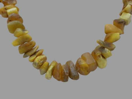 Naszyjnik – bursztyn, jantar bałtycki w kolorze miodowo-mlecznym.