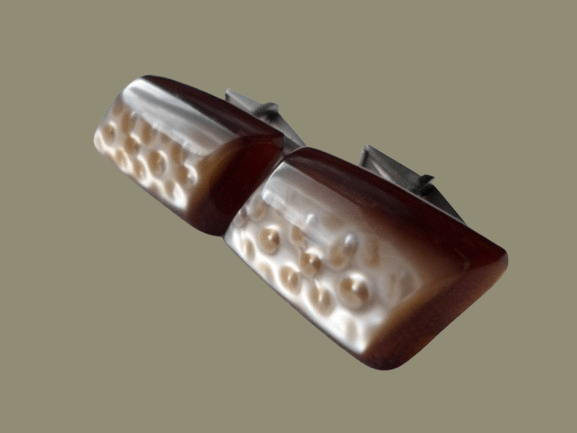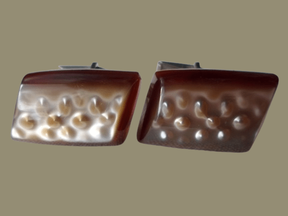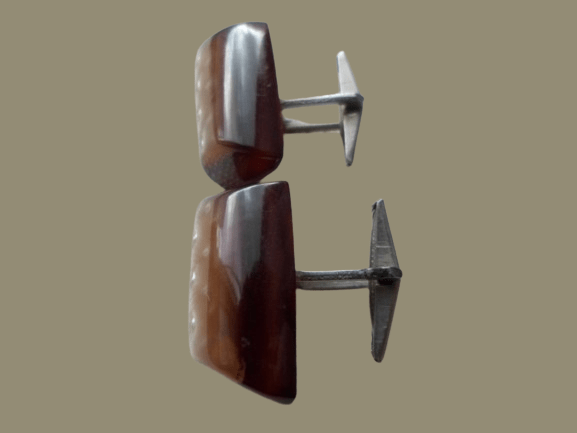 mamy przyjemność zaprezentować Państwu naszą ekskluzywną ofertę sprzedaży perłowo-brązowych spinek do mankietów z epoki PRL-u.