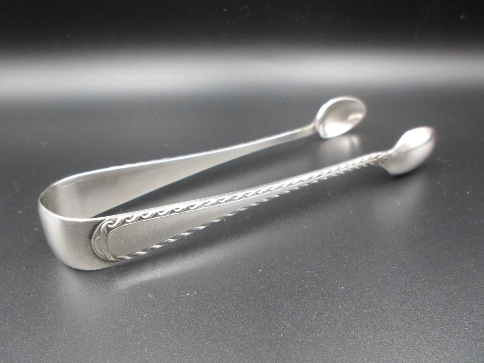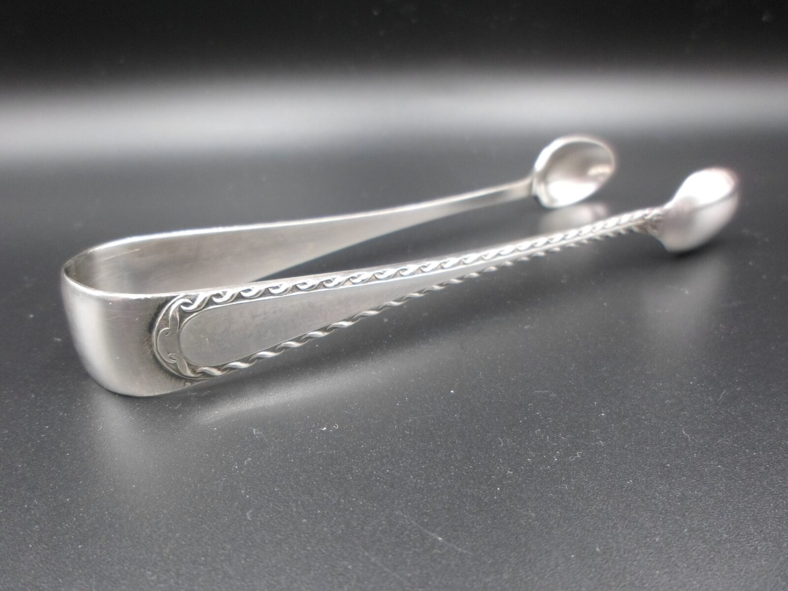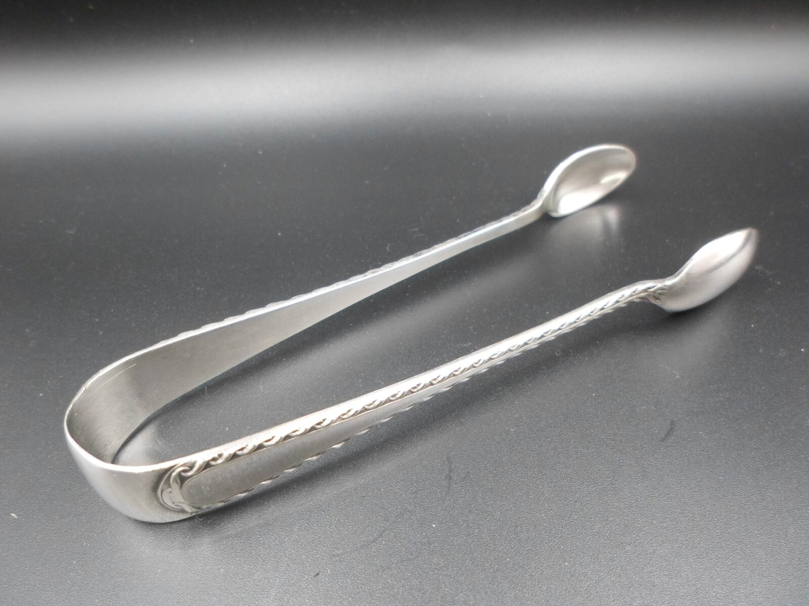 POSREBRZANE SZCZYPCE DO CUKRU RASOWE ART DECO