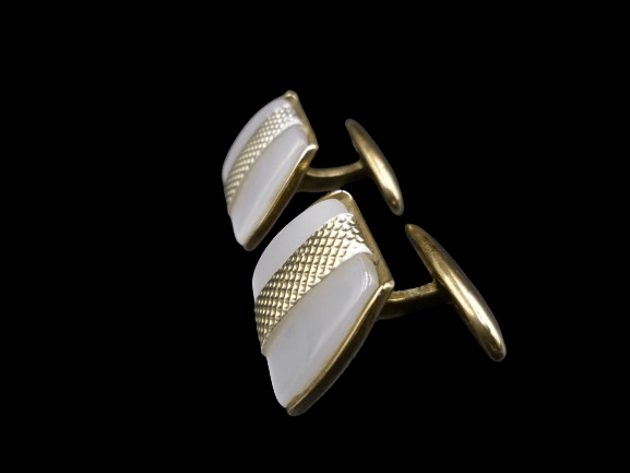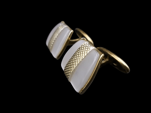 pozłacane spinki do mankietówPOZŁACANE EKSKLUZYWNE SPINKI DO MANKIETÓW Z MASĄ PERŁOWĄ