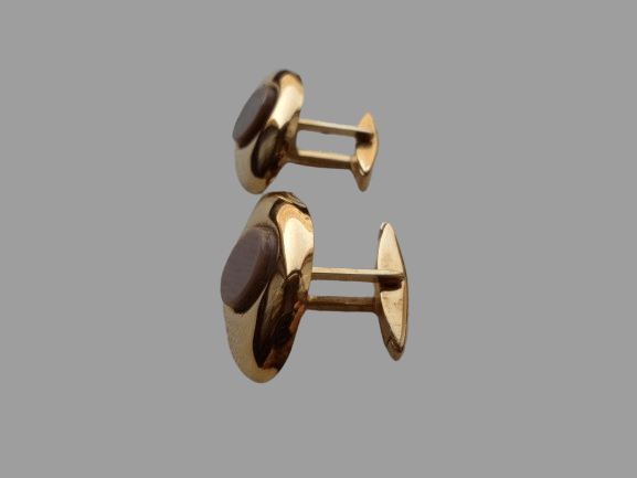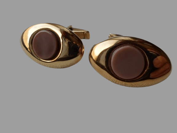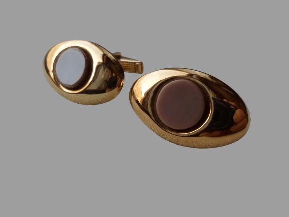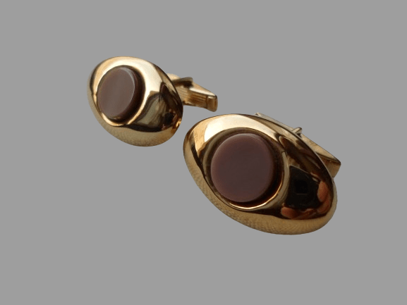 spinki do mankietów z oczkiemPOZŁACANE SPINKI DO MANKIETÓW Z BRĄZOWYM OCZKIEM
