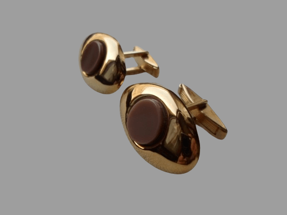 dziękujemy za zainteresowanie naszymi pozłacanymi spinkami do mankietów z brązowym oczkiem z epoki PRL-u.