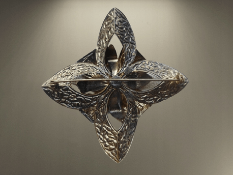 Broszka posiada piękne zdobienia oraz starannie wykonane oczko, które dodaje jej elegancji i klasy.
