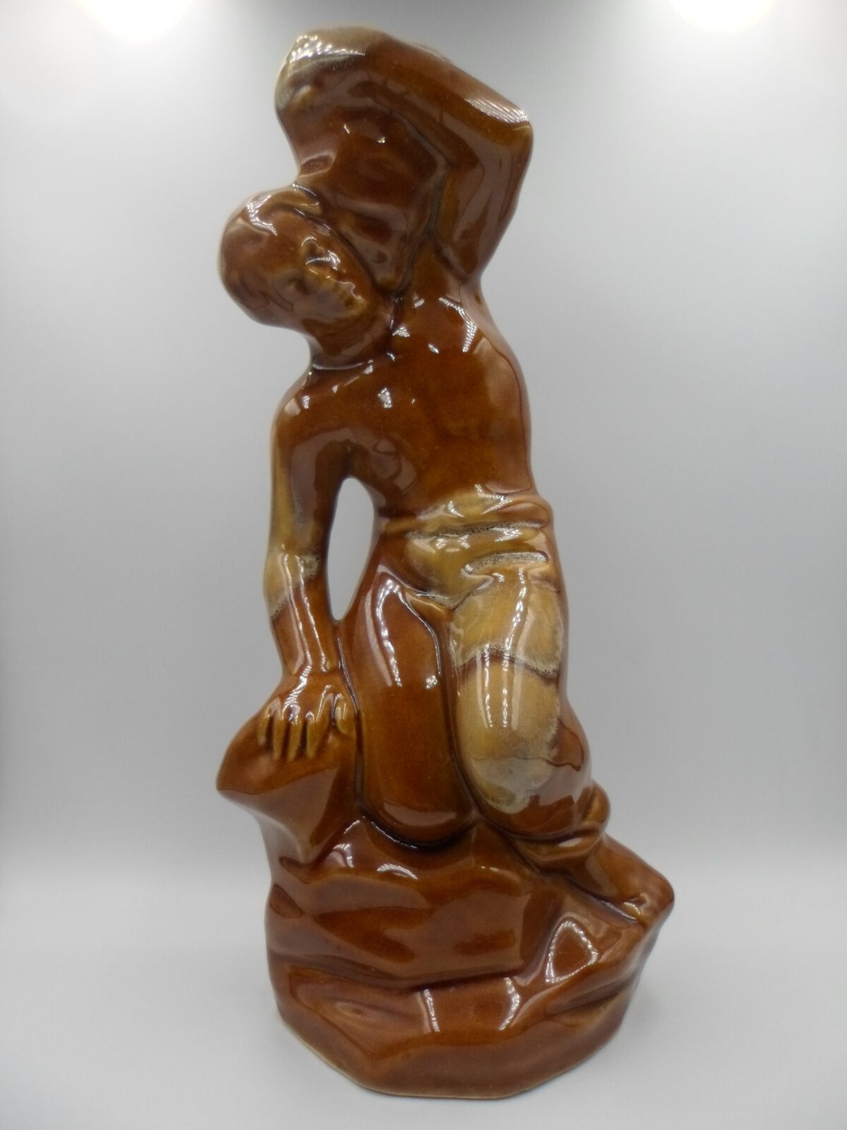 Mamy zaszczyt zaprezentować wyjątkowy przedmiot kolekcjonerski, który stanowi esencję sztuki użytkowej i dekoracyjnej polskiego wzornictwa lat powojennych – figurka Siłacza Kariatydy z porcelitu szkliwionego pochodząca z cenionej wytwórni w Mirostowicach. To rzadki i niezwykle cenny egzemplarz, który przyciągnie uwagę zarówno koneserów ceramiki, jak i osób poszukujących nietuzinkowych dodatków do swojego wnętrza.