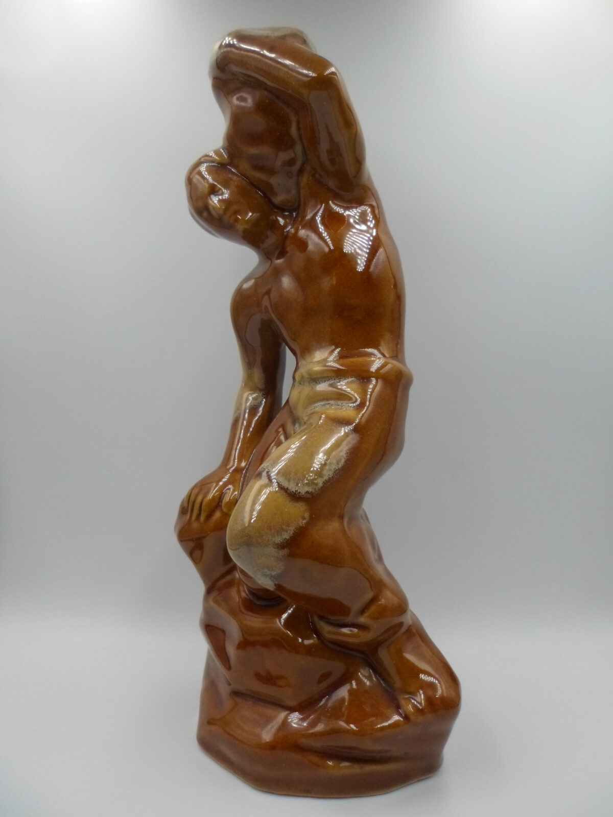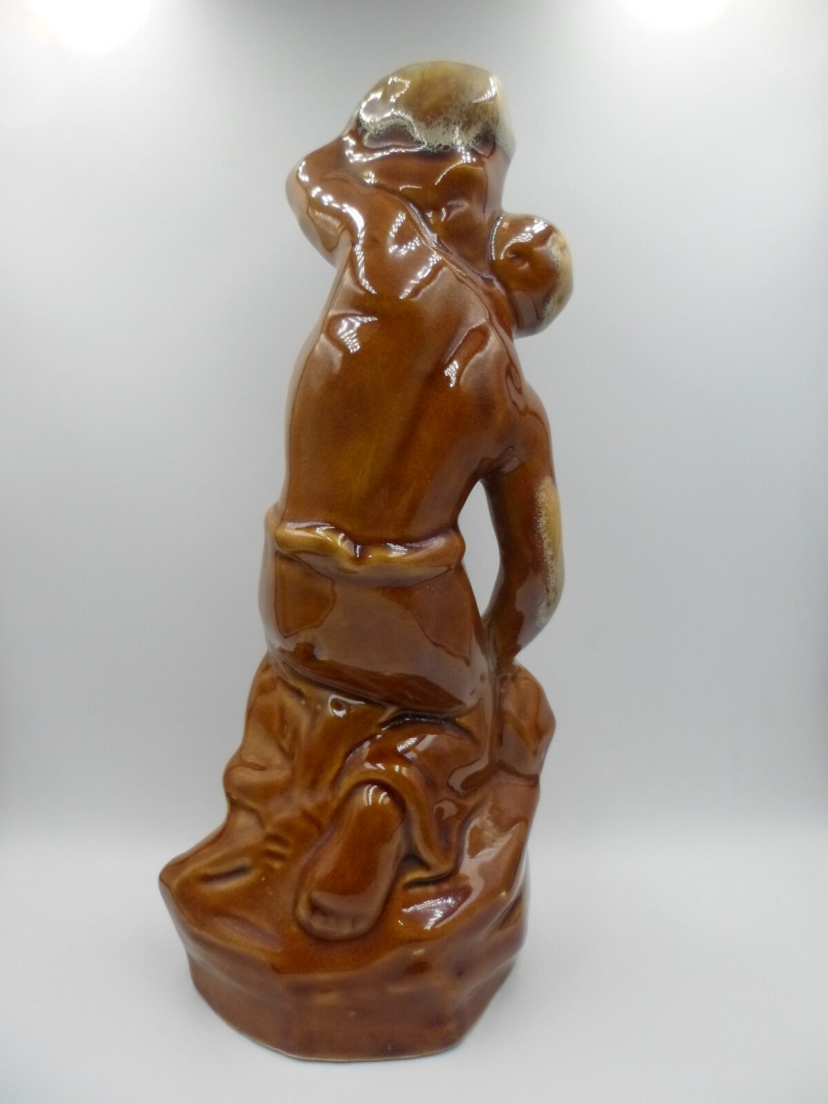- Stan zachowania: Figurka znajduje się w bardzo dobrym stanie, co jest rzadkością w przypadku wyrobów ceramicznych z tego okresu. Szkliwo jest w pełni zachowane, bez widocznych rys czy odprysków. Dzięki temu jest nie tylko wyjątkową ozdobą, ale także solidną inwestycją na przyszłość.
