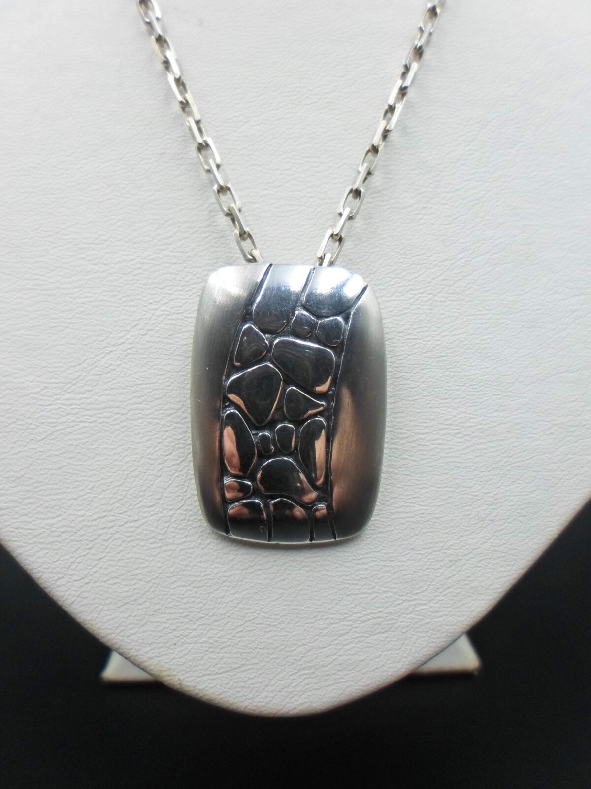 Ten wisiorek to prawdziwe dzieło sztuki użytkowej, które łączy w sobie prostotę formy z wyrafinowanym wykończeniem.