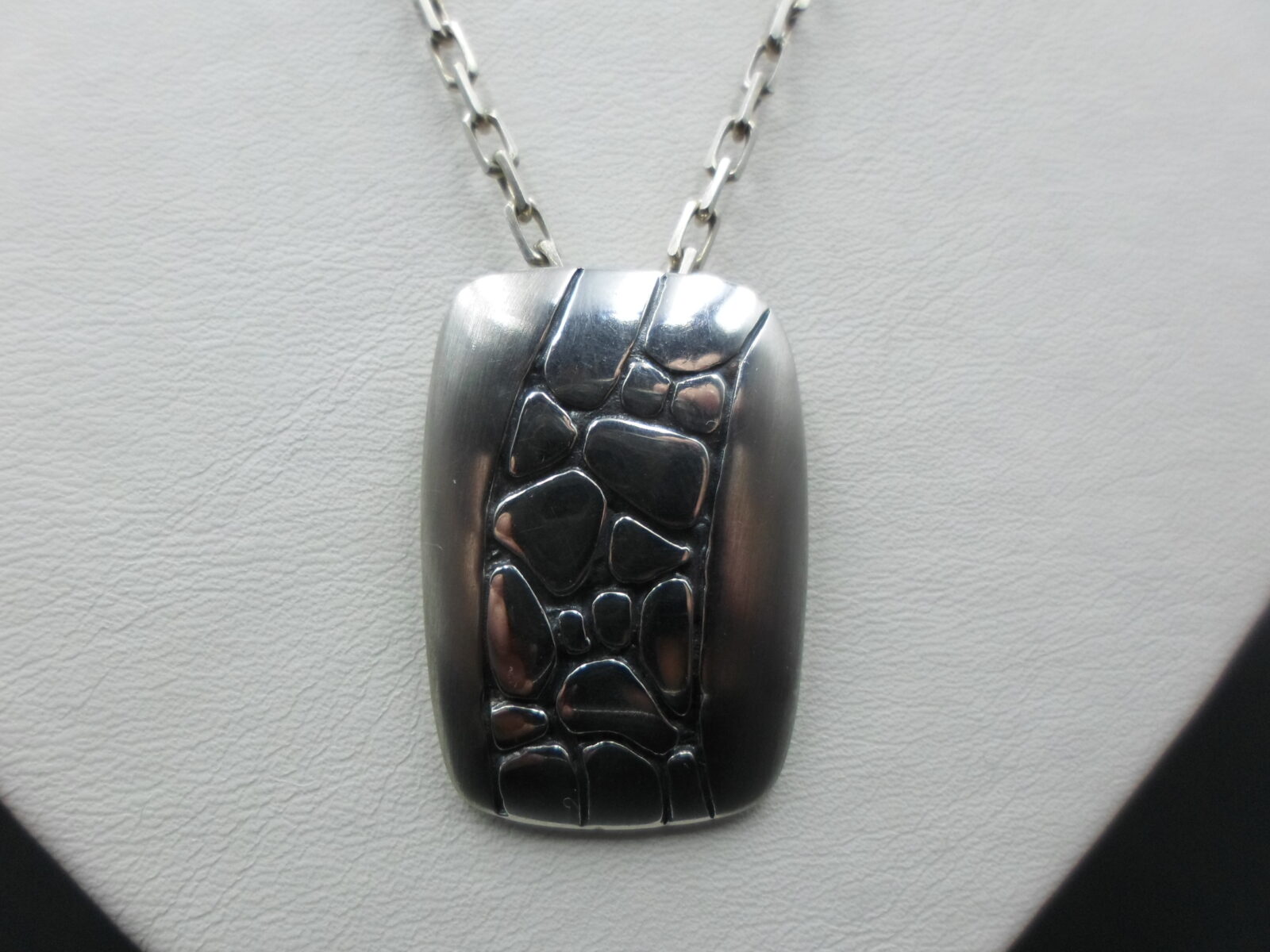 Odkryj piękno i prostotę polskiego wzornictwa z czasów PRL-u dzięki temu niezwykłemu srebrnemu wisiorkowi, który stanowi kwintesencję klasyki tamtej epoki.